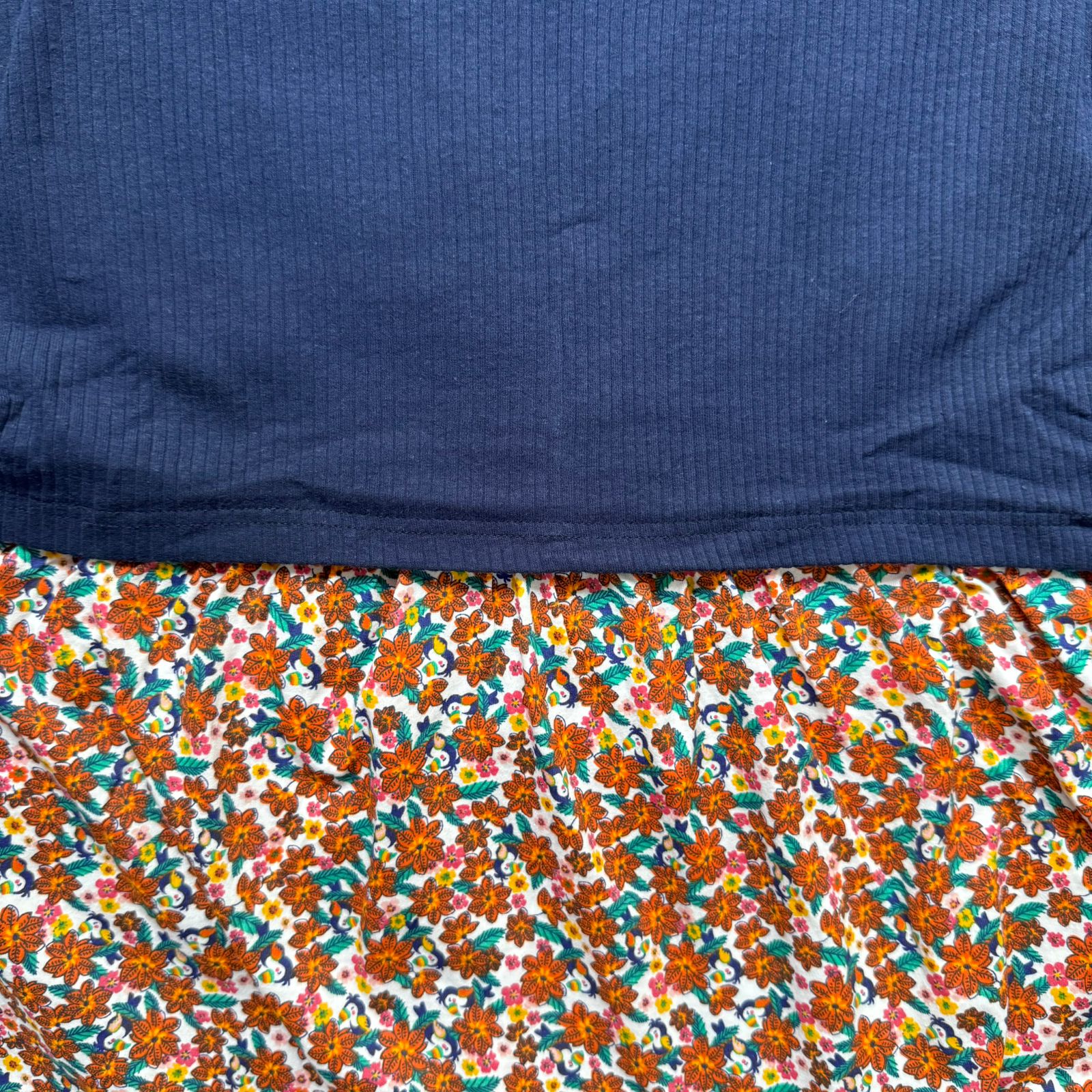 Blue and Brown Flowers - Dual Colour Zipless Criss Cross Maternity Wear