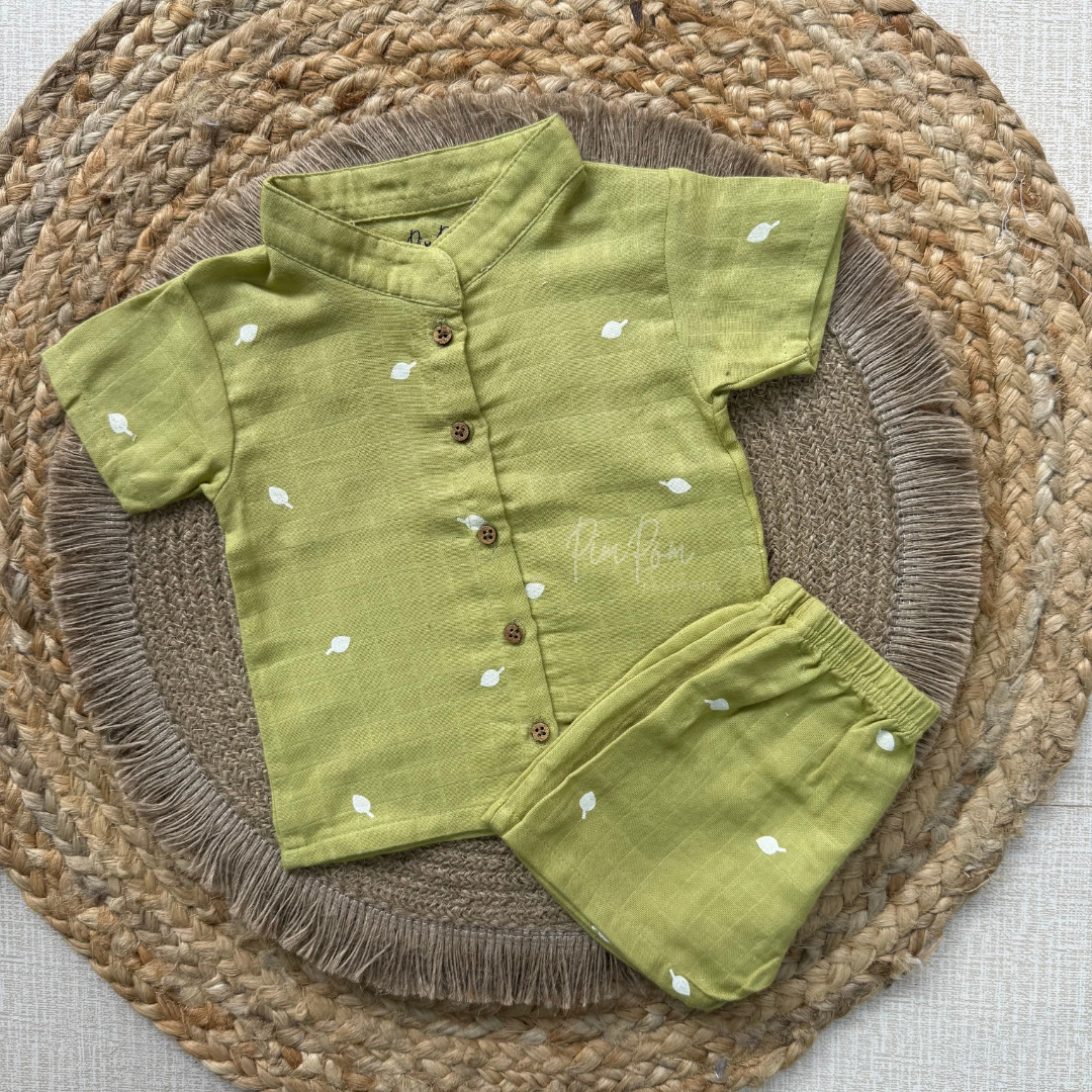 Muslin Boys Shirt and Shorts Set - Green Leaves